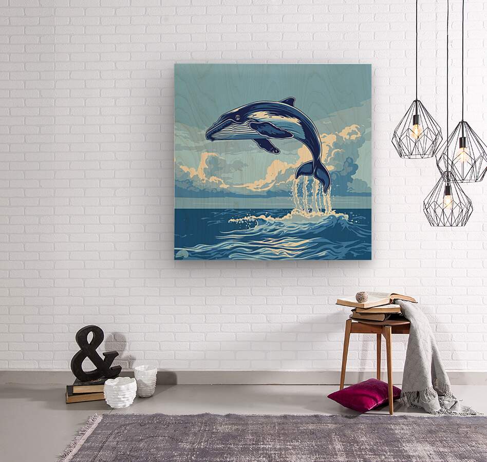 A beautiful serene minimalist whale breaching the ocean.